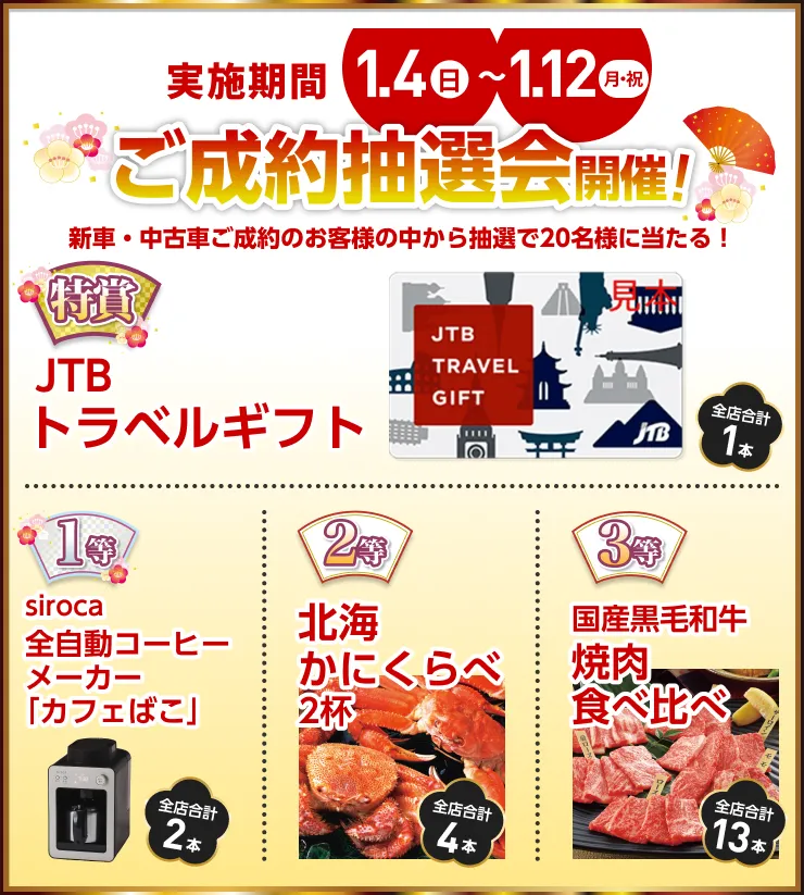 【ご成約抽選会について】■画像はイメージです。実物とは異なる場合がございます。■商品内容は予告なく変更となる場合がございますのでご了承ください。■ご当選者お一組様につきいずれかお一つとさせていただきます。■期間中に当店にて新車または中古車をご成約いただいた方が対象となります。■当プレゼントキャンペーン権利の他人への譲渡や換金、値引きはできません。■他のキャンペーンと併用できない場合がございます。■Honda Cars 南札幌でのみ実施しております。●詳しくは営業スタッフまでお問い合わせください。【下取り強化キャンペーンについて】■画像はイメージです。実物とは異なる場合がございます。■キャンペーン内容は予告なく変更する場合がございます。あらかじめご了承ください。■他のキャンペーンと併用できない場合がございます。■Honda Cars 南札幌にて実施しております。■詳しくは営業スタッフまでお問い合わせください。